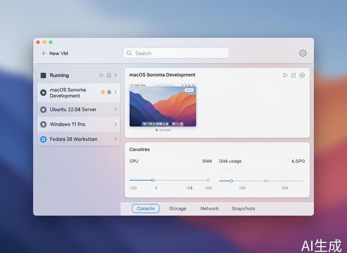Create and run macOS ARM virtual machines for app testing, code signing in isolated environments, sandboxed development, and reproducing macOS-specific bugs without touching your main system. Supports macOS Ventura, Sonoma, and newer ARM-compatible releases.